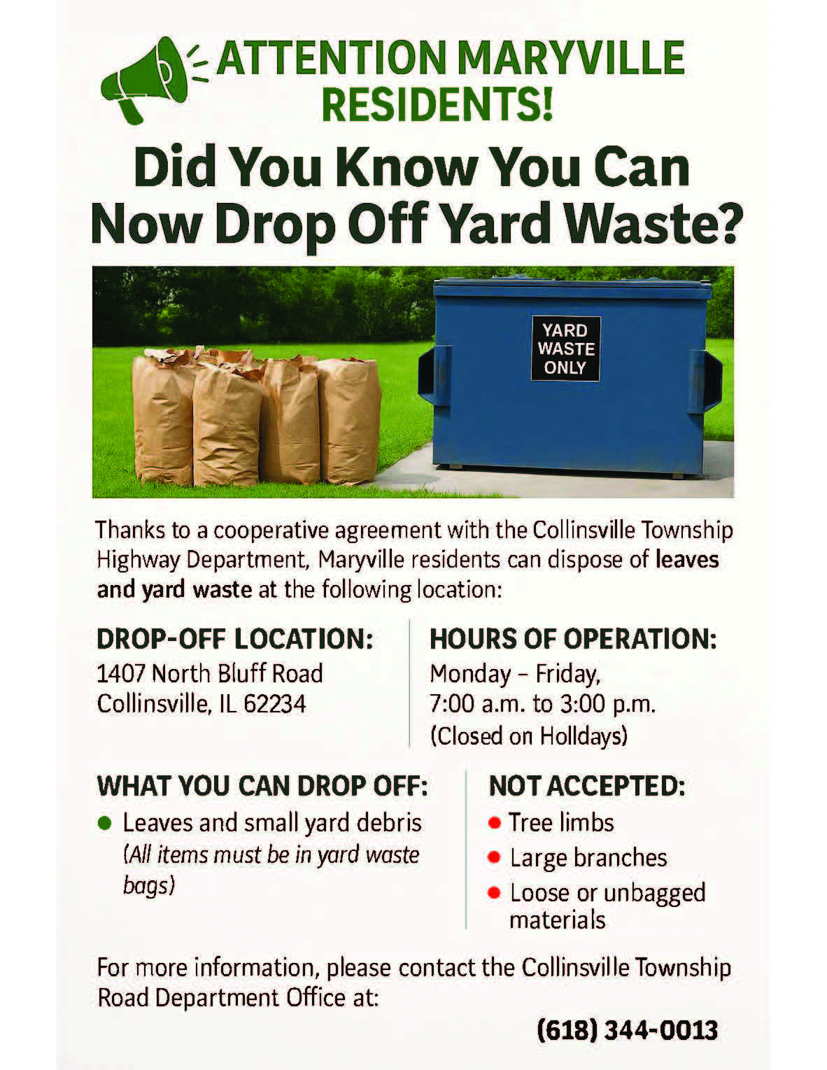 This position is 40 hours per week and is eligible for benefits including paid time off, retirement, and health insurance in accordance with the Articles of Agreement between The International Union of Operating Engineers, Local 520c and the Village of Maryville. Application deadline is November 7th, 2025, at 4:30pm. Applications may be printed from the Village’s website at www.vil.maryville.il.us/197/Water-Department. Applications may also be picked up at Village Hall, 2520 N. Center Street, Maryville, Illinois 62062 between the hours of 8am and 4:30pm. Please mail or return your application in a sealed envelope to the attention of Human Resources, Melissa Loftus.